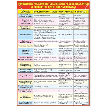 Home EDUKACJA PROZDROWOTNA I OBRONNAPLANSZE › 3523 Porównanie podstawowych zabiegów resuscytacyjnych u dorosłych, dzieci oraz niemowląt