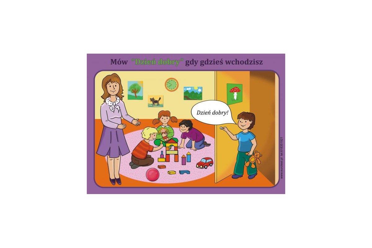 Nasze plansze są próbą obrazowego przedstawienia prawidłowych zachowań dziecka jako wycinka szerszej wiedzy społecznej przyswajanej podczas nauczania wczesnoszkolnego. Zestaw pomaga rozwijać umiejętności niezbędne w poprawnych relacjach z innymi dziećmi i dorosłymi, takie jak porozumiewanie się i zgodne funkcjonowanie w zabawie i sytuacjach zadaniowych.