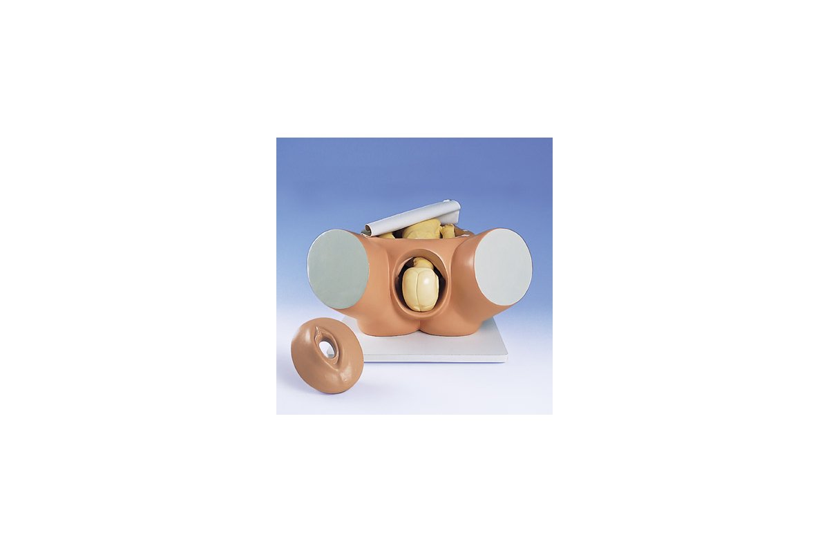 Model anatomiczny i symulator porodowy do nauczania i ćwiczenia czynności diagnostycznych i terapeutycznych przed i w trakcie porodu. Model posiada żeńską miednicę z demontowalną: jamą brzuszną, sromem i płodem. Symulator dostarczany jest na podstawie. Wymiary: 30x55x55 cm, 6 kg.