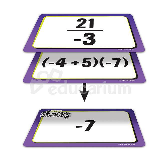 Seria gier matematycznych utrwalających wiadomości algebraiczne z różnych zakresów. Talia składa się kart "stack" i kart do dobrania. Na początku gry rozkładamy karty "stack" a pozostałe karty układamy w zakryty stosik. Odkrywając karty ze stosika należy jak najszybciej dobrać dwie do karty "stack" i stworzyć w ten sposób trójkę kart. Gracz z największą liczbą trójek wygrywa. Nauczyciel może regulować poziom trudności poprzez eliminację kart "stack" z trudniejszymi zadaniami.
