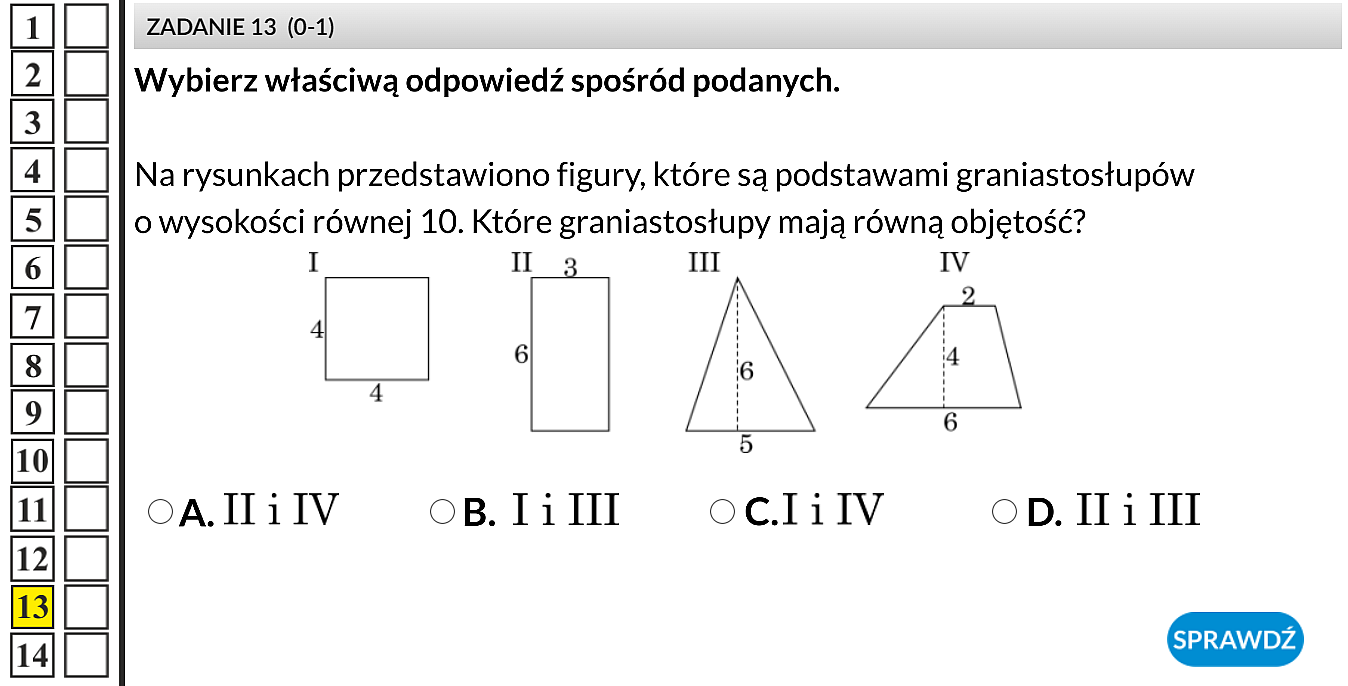 Program pozwala uczniom oswoić się z formą egzaminu ósmoklasisty, oferując realistyczne warunki testowe w wersji testowej oraz elastyczne podejście w wersji ćwiczeniowej. Wersja testowa imituje oficjalne warunki egzaminacyjne – po zatwierdzeniu odpowiedzi nie można ich zmieniać, a wyniki prezentowane są dopiero na końcu testu. Wersja ćwiczeniowa umożliwia poprawianie błędów, resetowanie zadań i natychmiastowe uzyskiwanie informacji zwrotnych, co sprzyja systematycznemu utrwalaniu wiedzy.