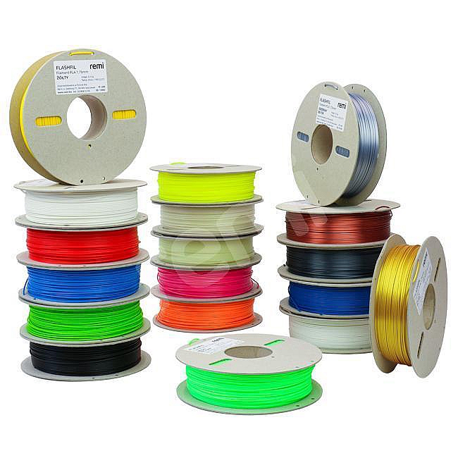 Zestaw 18 szt. różnokolorowych filamentów PLA 0,5kg biodegradowalnych. Szpule z filamentem posiadają wielkość pasującą do komory drukarki Flashforge Adventurer 3 tak, aby przy pracy drukarki komora drukarki na filament była zamknięta.