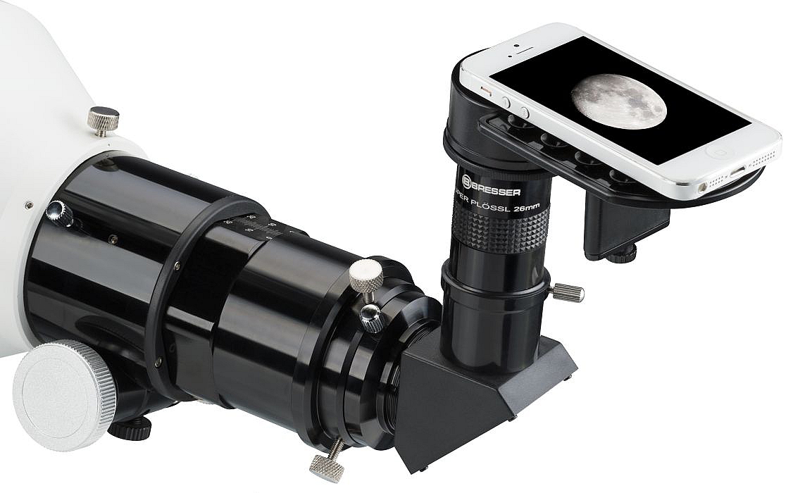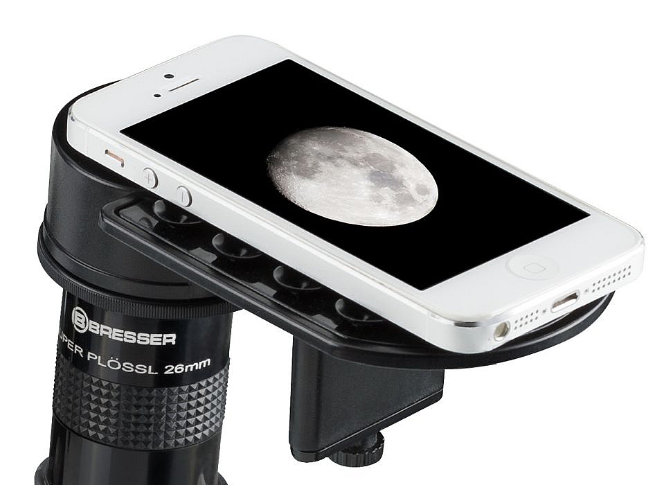 Wykonaj zdjęcie smartfonem poprzez lunetę, teleskop czy też mikroskop wykorzystując adapter pozwalający na proste mocowanie smartfona do okularu instrumentu optycznego o średnicy od 22 do 48 mm.