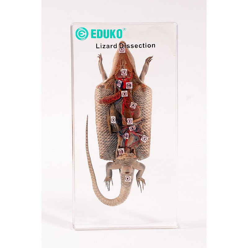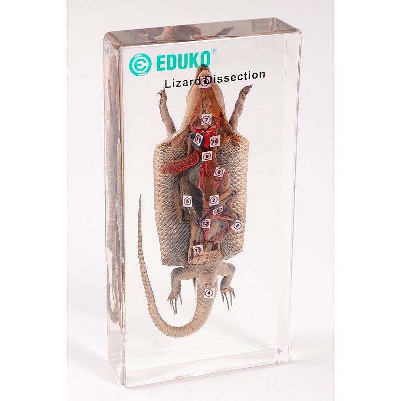 Zalana w przejrzystej pleksi dysekcja gada na przykładzie jaszczurki jest cenną pomocą dydaktyczną na poziomie szkoły średniej. Utrwalona w tworzywie dysekcja pozwala uczniom zapoznać się z położeniem i wyglądem poszczególnych narządów. Dla ułatwienia nauki na preparacie oznaczono numerami: