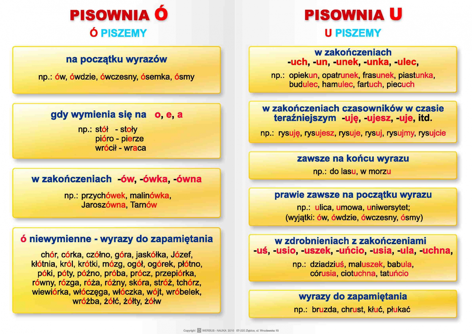2. a) Pisownia ó b) Pisownia u