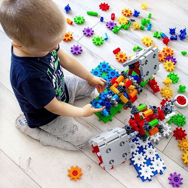 Przy takiej zabawie dziecko podświadomie zapoznaje się z ciekawą zabawą konstrukcji i poznaje zasady mechaniki.