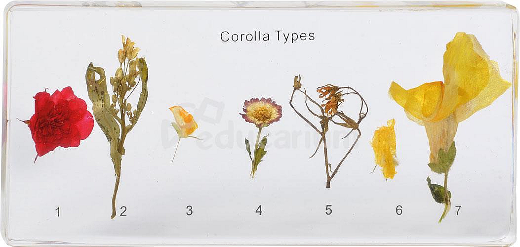 W akrylu znajduje się 7 kwiatów o różnych kształtach korony: