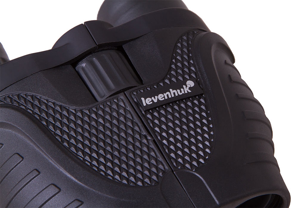 Wytrzymały korpus z gumową powłoką chroni układ optyczny przed wilgocią i zanieczyszczeniami. Wytłaczana gumowa powłoka sprawia, że ta lornetka doskonale leży w dłoniach i nie wyślizguje się. Centralny mechanizm ustawiania ostrości pozwala szybko dostosować ostrość obrazu. Rozstaw źrenic można regulować w zakresie od 52 do 74 mm.