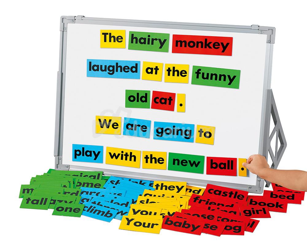 Połączenie tak lubianych przez dzieci elementów magnetycznych z ćwiczeniem czytania, pisania i tworzenia kreatywnych wypowiedzi. W czasie ćwiczeń dzieci utrwalają słownictwo, a jednocześnie używają świadomie wyrazów jako poszczególnych części mowy w tworzeniu zdań. Zestaw zawiera: