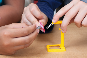 Uczniowie poznają biegunowość magnesów, każdy magnes ma dwa bieguny. Bieguny podobne odpychają się, a bieguny przeciwne przyciągają się. Uczniowie dowiadują się tego wykorzystując wagoniki wraz z małymi magnesami sztabkowymi. Połowa z 30 magnesów sztabkowych nie ma zaznaczonych biegunów, więc uczniowie muszą samodzielnie określić bieguny.