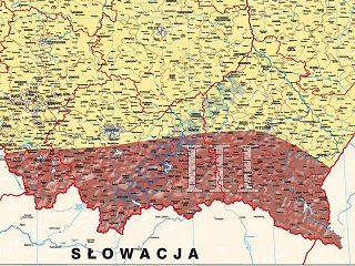 Ścienna mapa przedstawiająca podział Polski na strefy obciążenia wiatrem oraz wartości charakterystyczne dla obciążenia wiatrem zgodnie z aktualizowanym aneksem do polskiej normy PN-77/B-02011/Az1. Granice stref przedstawione są na tle przestrzennego odwzorowania ukształtowania powierzchni ziemi. W treści mapy zawarto trzystopniowy podział na województwa, powiaty i gminy.