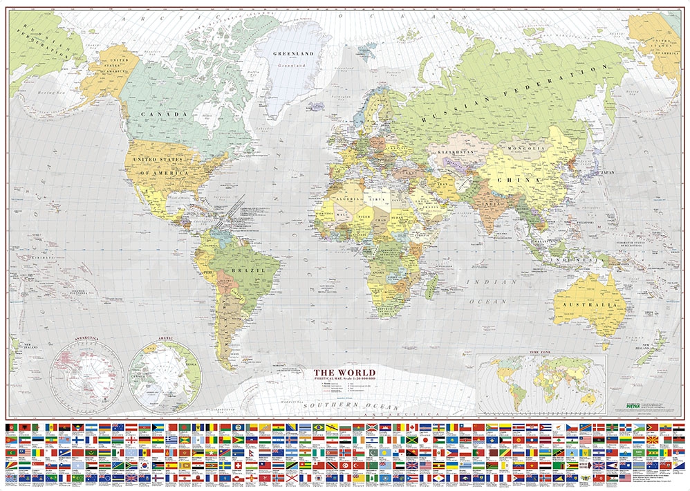 Mapa ścienna świata w języku angielskim to doskonały wybór dla pasjonatów podróży planujących kolejną wyprawę. Mapa sprawdzi się także idealnie w firmach o zasięgu międzynarodowym. Jest to także doskonałe narzędzie dla nauczycieli języka angielskiego czy geografii, którzy szukają sposobu na urozmaicenie swoich lekcji. Mapa ta dodatkowo zawiera ciekawe informacje i dane dotyczące świata.