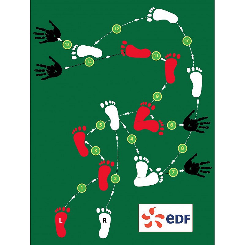 Druk na wyjątkowo wytrzymałym PCV 500 g/m² (klasa ogniowa B1), mata jest zmywalna i odporna na warunki atmosferyczne,