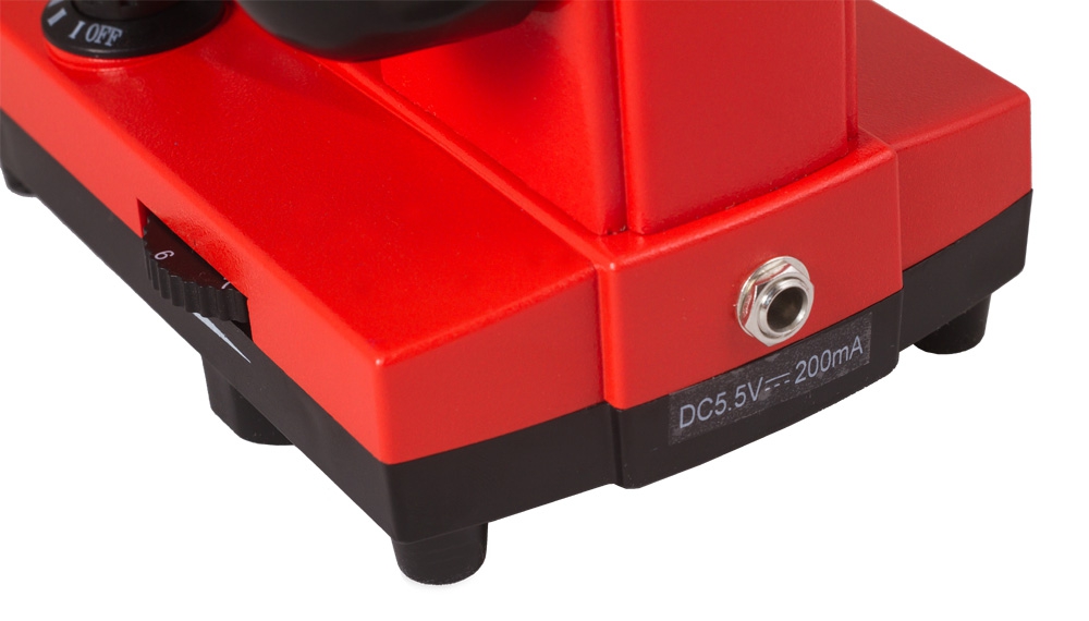 Korpus mikroskopu wykonany jest z trwałego tworzywa sztucznego – dzięki temu mikroskop jest lekki, przenośny i jednocześnie niezawodny. Głowica nachylona pod kątem 45° pozwala na prowadzenie obserwacji w wygodny sposób. Mikroskop może być zasilany za pomocą przewodu lub baterii. Zasilanie bateriami daje niecodzienną możliwość prowadzenia obserwacji w terenie.