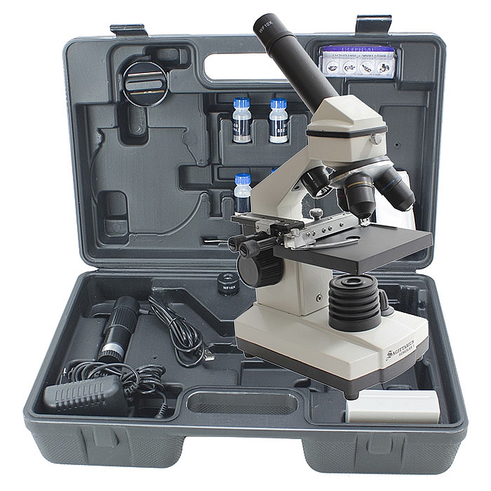 Bogate wyposażenie w postaci PC okularu z kablem USB, zestawu preparatów, gilotyny umożliwia wszechstronne jego wykorzystanie.