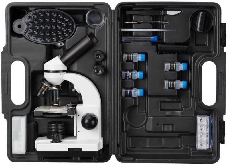 Bogate wyposażenie w postaci gotowych preparatów, czystych szkiełek podstawowych i nakrywkowych oraz narzędzi: takich jak gilotyna, pęseta, mieszadełko, skalpel pozwala na przygotowywanie własnych preparatów.