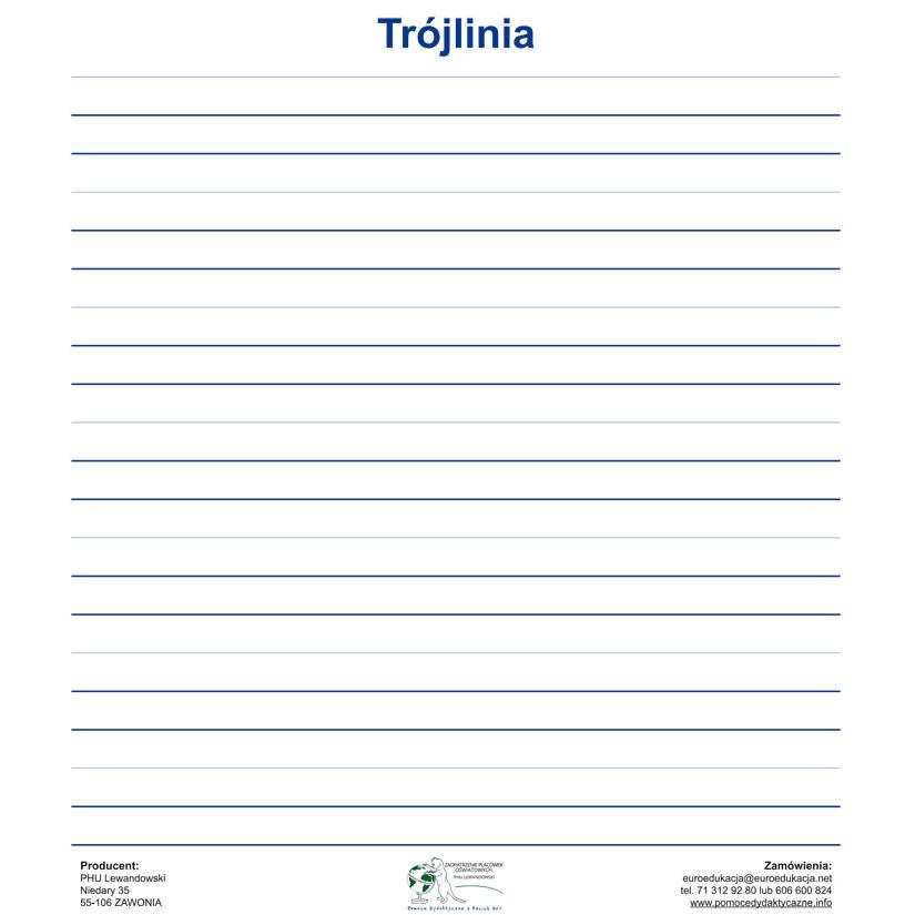 Teraz już nie ma potrzeby malowania trwałej liniatury na tablicy i tracenia w ten sposób jej powierzchni. Skorzystaj z mobilnego rozwiązania, dzięki któremu błyskawicznie w miarę potrzeb ?przykleisz? na powierzchnię posiadanej tablicy, gotową liniaturę. Skrócisz czas poświęcony na doraźne jej nanoszenie, przechowasz zapis lekcji lub jednym ruchem nakleisz /odkleisz/ na tablicę gotowe zadanie lub sprawdzian.