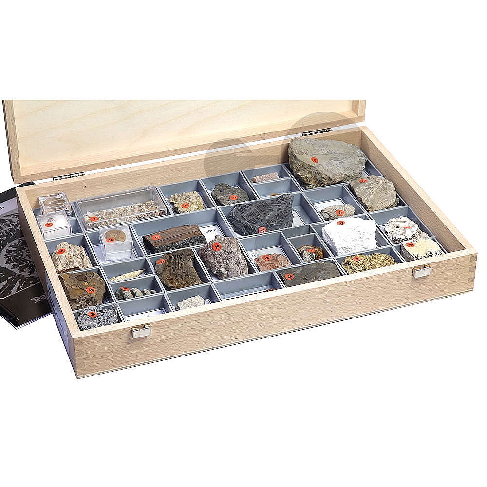 Okazy są ponumerowane i oznaczone nazwą, wiekiem i miejscem odkrycia. Są one dostarczane w oddzielnych pudełkach z tworzywa sztucznego umieszczonych w drewnianym pudełku z pokrywką. W zestawie znajduje się lista składu kolekcji.