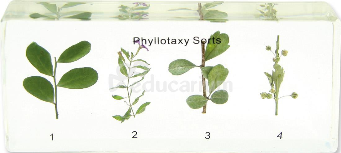 Poszczególne okazy demonstrują typy regularnego układu liści na łodydze roślin. Uczniowie znajdą tu ulistnienie: skrętoległe, nakrzyżległe, naprzeciwległe i okółkowe.