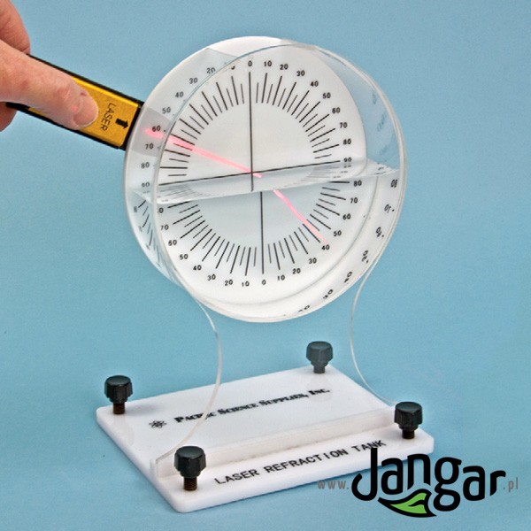 Model bardzo dobrze prezentuje załamanie wiązki światła laserowego po przejściu przez inny ośrodek (tu: wodę) oraz zjawisko odbicia. Składa się z przezroczystego z przodu, walcowatego pojemnika z wodą i skalą (360 stopni) na tylnej ściance, wykonanego z tworzywa sztucznego o średnicy 16 cm, oraz ruchomego ramienia z laserem włączanym przyciskiem. Całość na podstawie.