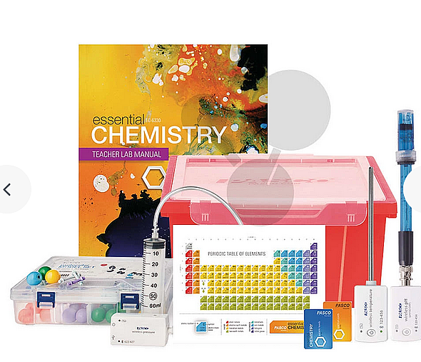 Bezprzewodowy czujnik ciśnienia, bezprzewodowy czujnik pH, bezprzewodowy czujnik temperatury, zestaw do budowy cząsteczek, układ okresowy, karty informacyjne, pojemnik do przechowywania z pokrywką, instrukcje