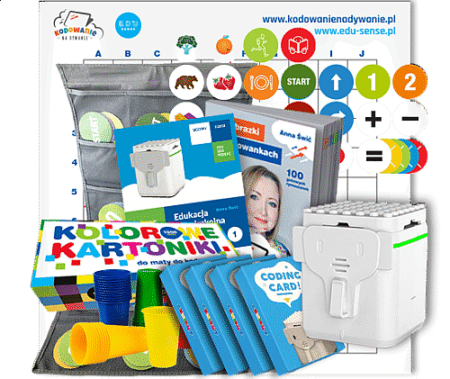 Produkt stworzony specjalnie do maty do kodowania, żeby jeszcze bardziej podnieść efektywność jej wykorzystania na zajęciach dydaktycznych w przedszkolach i szkołach. Starannie dobrane kolory, idealny rozmiar i zaokrąglone brzegi sprawiają, że bez problemu sprawdzą się w roli kolorowych pikseli. Kolorowe kartoniki to pomysł na dyktanda graficzne w dużym formacie, obrazki ułożone na podstawie instrukcji rymowanek czy na podstawie kodu binarnego. To pomoc dydaktyczna, która pozwala w ciekawy sposób wprowadzić dziecko w świat podstaw programowania, idealnie sprawdza się przy pracy zespołowej. To zestaw, który warto mieć w każdym przedszkolu i szkole.