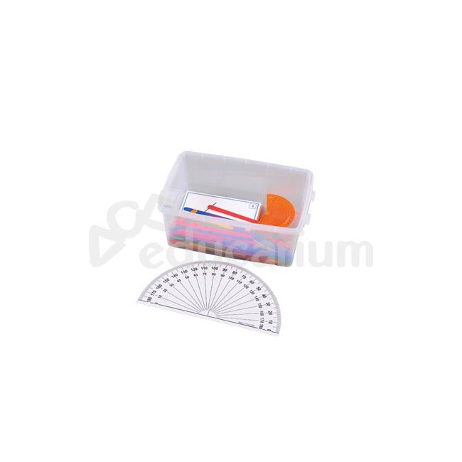 Zestaw pozwala wprowadzić pojęcia o kątach krok po kroku w zrozumiały dla uczniów sposób. Najpierw uczymy typów kątów, które uczniowie konstruują za pomocą patyczków. Do utrwalania tej wiedzy posłuży rozkładany plakat na ścianę. Następnie przechodzimy do poznania działania kątomierza w praktyce. Najpierw mierzymy gotowe kąty na kartach, a następnie przenosimy je do zeszytu.