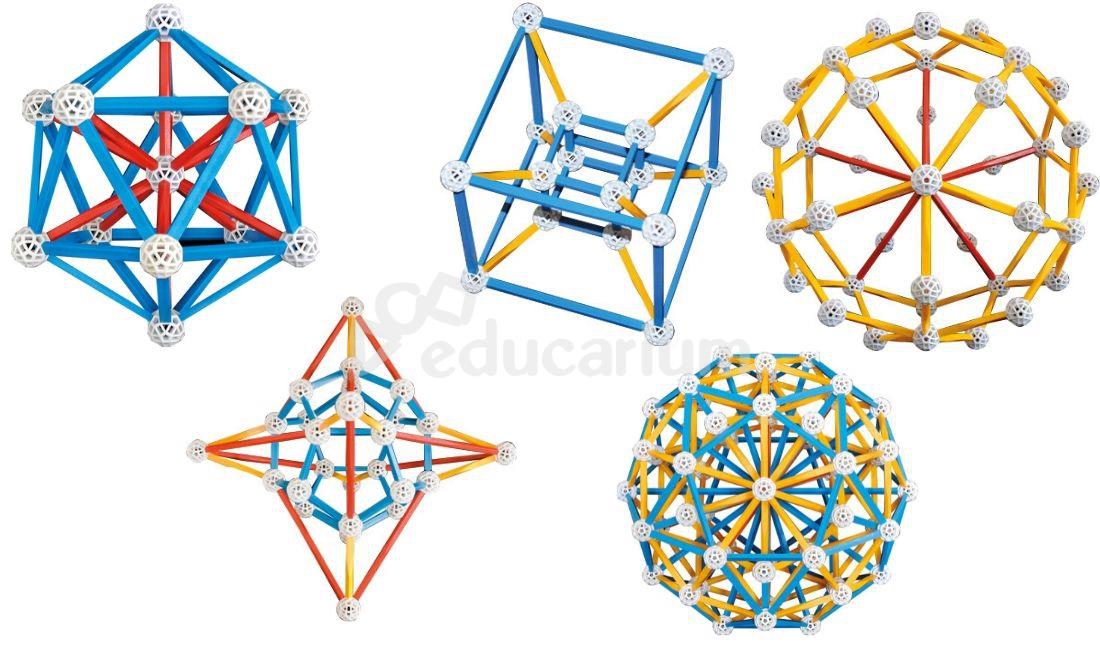 Zestaw pozwala dokładnie odtworzyć wszystkie pięć brył Platona. Można też dzięki specjalnym ściankom do każdego wielościanu foremnego stworzyć jego bryłę dualną.