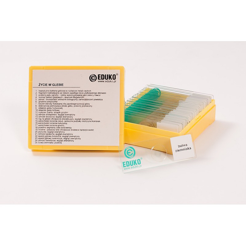 Home BIOLOGIA - MEDYCYNAPREPARATY MIKROSKOPOWE › ŻYCIE W GLEBIE - Zestaw 25 preparatów - EDUKO